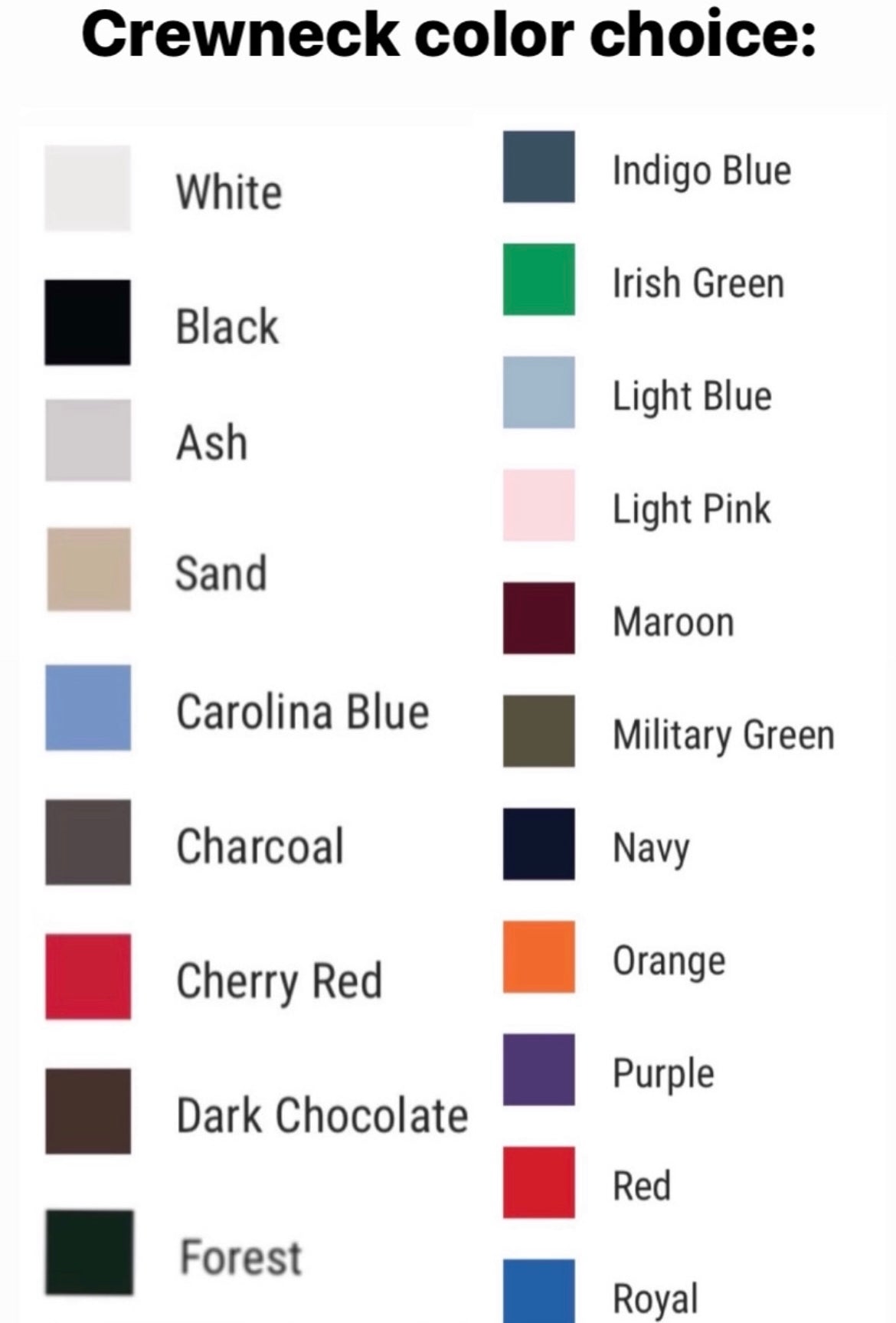 Made from 50/ 50 blend crewneck sweatshirts.