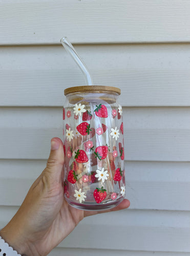 16 oz Strawberries & Bows Glass Can Cup